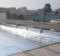 根据施工现场状况,进行合理定位,确定卷材铺贴方向.在基层上弹好卷材控制线,按流水方向从低往高进行卷材试铺.